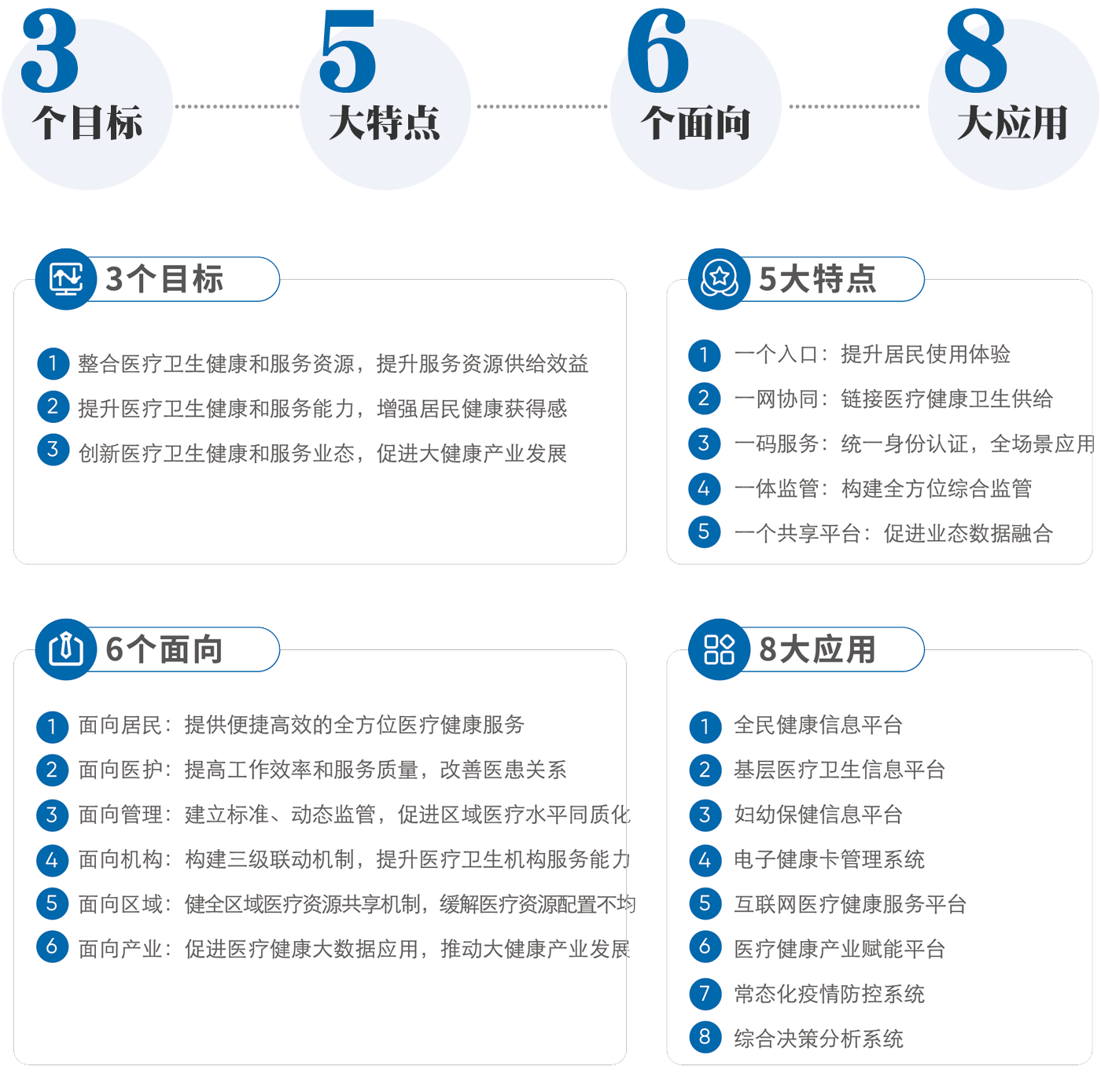 智業(yè)智慧健康城市秉承“以促進(jìn)健康為中心”的“大健康”、“大衛(wèi)生”觀,結(jié)合區(qū)域醫(yī)療健康融合發(fā)展特點(diǎn),提供新時(shí)代區(qū)域醫(yī)療健康一體化產(chǎn)品方案,涵蓋全民健康信息平臺、基層醫(yī)療衛(wèi)生信息平臺、婦幼保健信息平臺、電子健康卡管理系統(tǒng)、互聯(lián)網(wǎng)醫(yī)療健康服務(wù)平臺、健康產(chǎn)業(yè)賦能平臺、常態(tài)化疫情防控系統(tǒng)、綜合決策分析系統(tǒng)八大應(yīng)用,具有一個(gè)入口、一網(wǎng)協(xié)同、一碼服務(wù)、一體監(jiān)管、一個(gè)共享平臺五大特點(diǎn)。